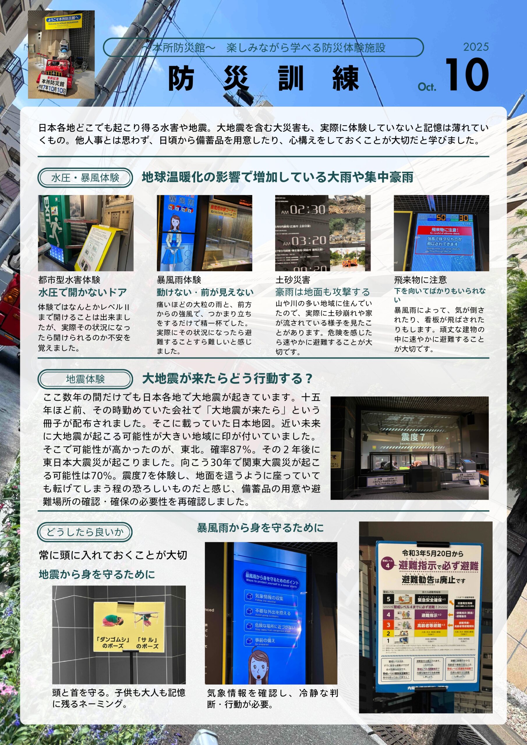 10/10(金)に、本所防災館へ防災訓練に行ってきました!